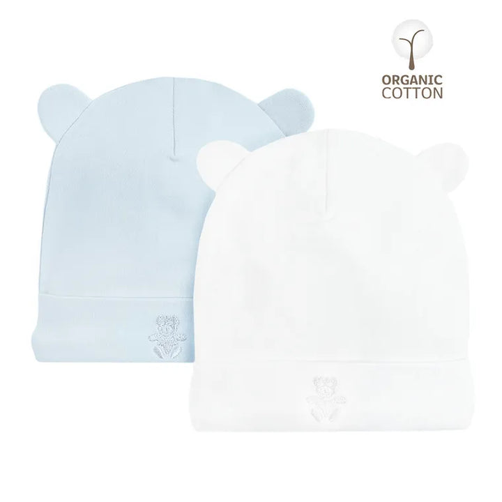 Baby Hat, Organic Cotton, Light Blue, White, Set, 2 Pack CC CAB2201449