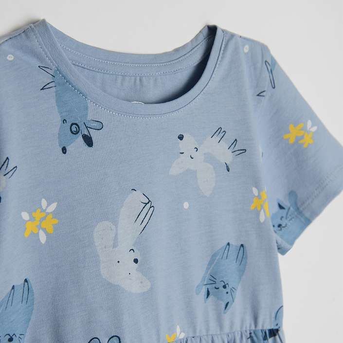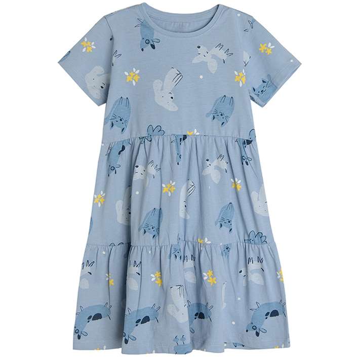 Girl's Blue Short Sleeve Dress With Dog Print - CC CCG2410704
