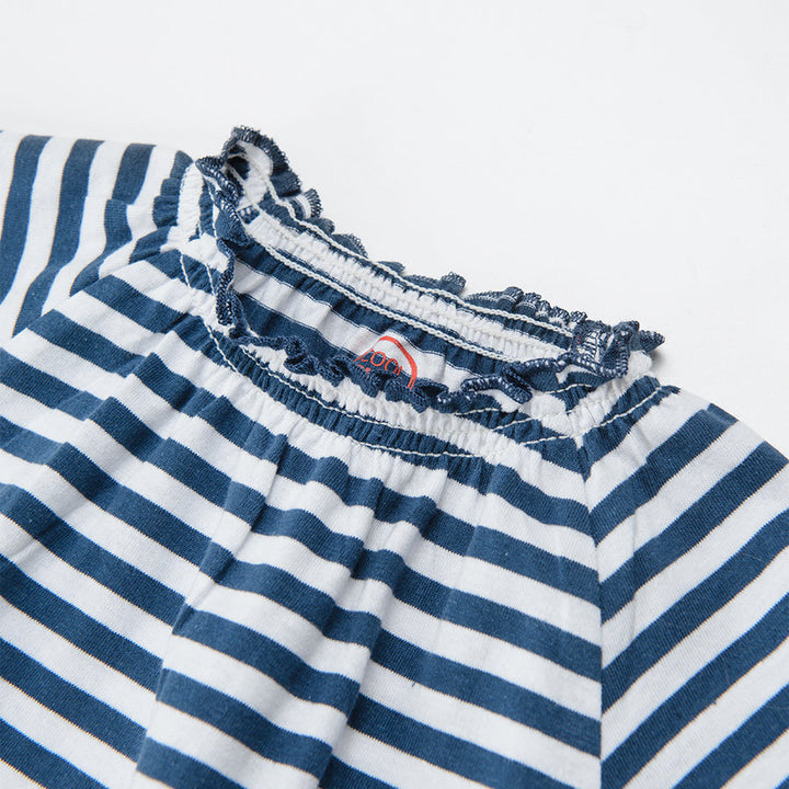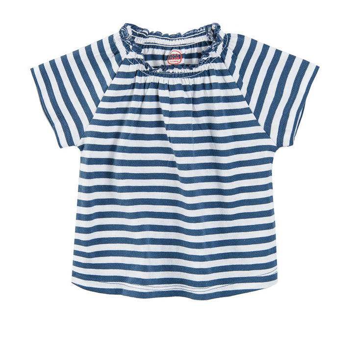 Girl's short-sleeve blouse, navy blue and white CC CCG2402074