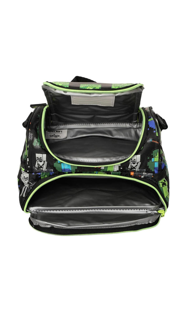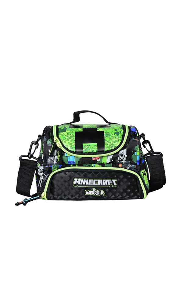 Fuel up for adventure with the Smiggle Pixel Power Lunch Bag, inspired by the blocky world of Minecraft! Designed with a bold green and black pixelated pattern, tools, and gaming icons, this lunch bag is perfect for young gamers who want to bring fun to every meal.