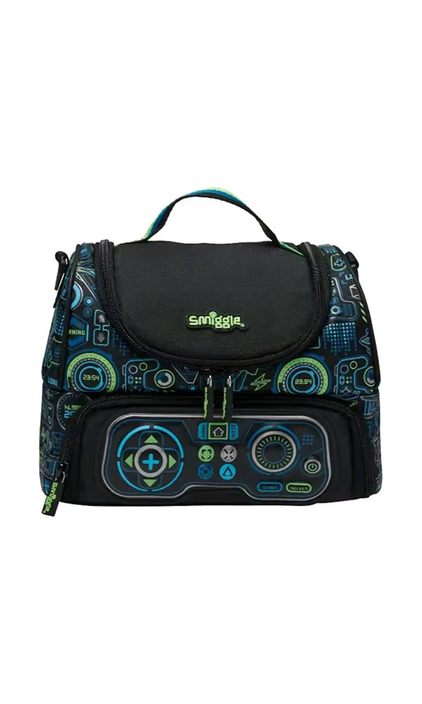 Level up lunchtime with the Smiggle Game Mode Dual Compartment Lunchbox – the perfect companion for gamers on the go! Designed with an epic game controller print, vibrant neon green accents, and tech-inspired graphics, this lunchbox is a must-have for young gaming fans.