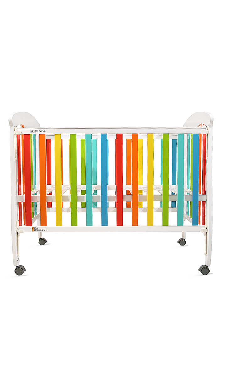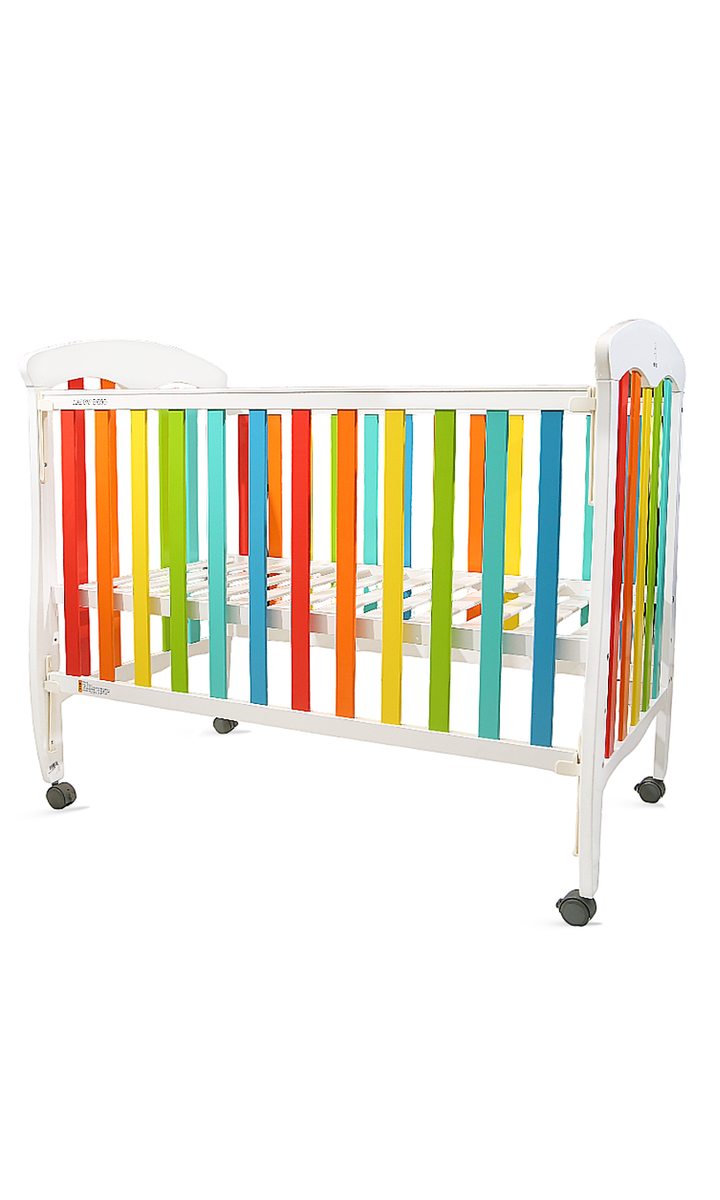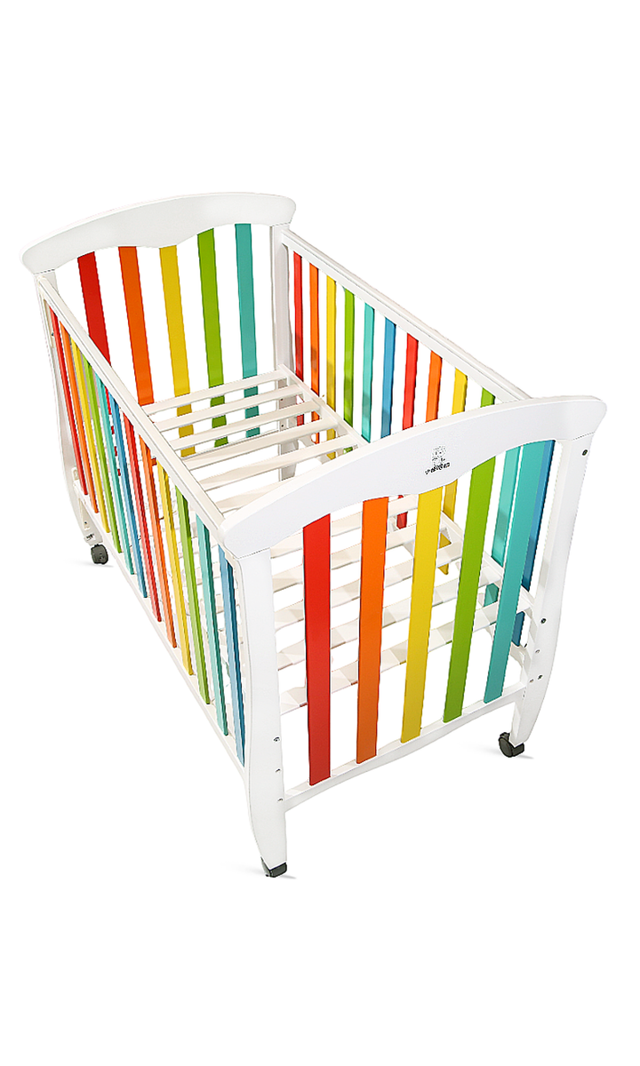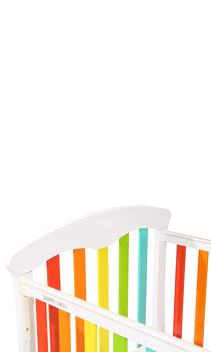 Brighten up your nursery with the Rainbow Dreams Baby Cot — a cheerful and safe haven for your little one. Designed with multicolored slats and a smooth white frame, this eye-catching cot adds a playful pop of color while providing a secure and comfortable sleeping space. Made from high-quality wood with a non-toxic finish, it features breathable slatted sides, smooth edges, and rolling wheels for easy movement. A perfect blend of style, safety, and function — ideal for modern, joyful nurseries.