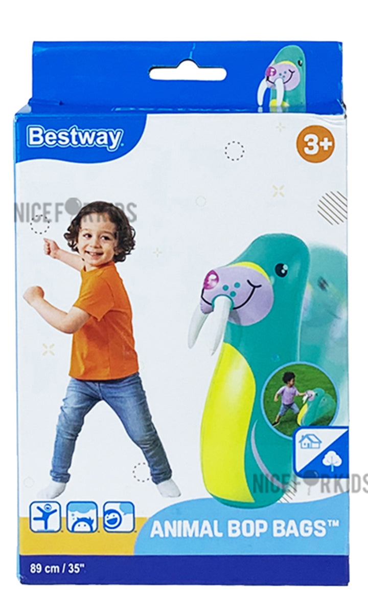 Designed to get kids moving, grooving and out of the house, these Up, In & Over Bop Bags by Bestway are quality-tested and put the focus back on fun! Great for indoor or outdoor use. the Bop Bags have a built-in sand chamber for stability. Kids can develop their hand-eye coordination as they take a swing at the Bop Bag. They will have a blast bopping away with their new Bop Bags! BOP BAGS Safety valve * Sturdy pre-tested vinyl Built-in sand chamber for stability Fun for children Contents: One punching bag Made in China.