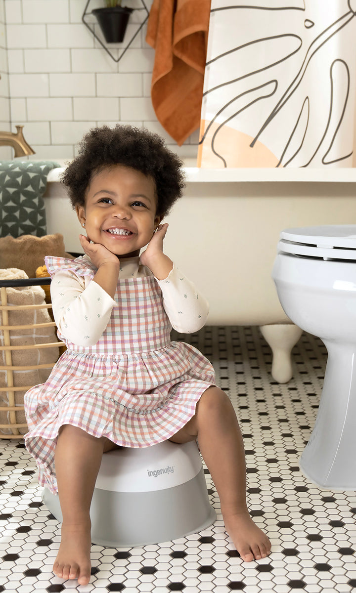 Get everything you need in a toddler toilet with the Ready Set Go Potty! This clean and simple potty chair from the #1 Manufacturer of Potties* provides your little one with a safe and secure space to learn to go. With an extra wide stable base and comfortable seat, your toddler will feel supported in more ways than one as they take on the task of potty training. The simplistic design allows for easy cleaning, a must when it comes to teaching little ones the art of toilet training. Third party safety tested and approved. No assembly required. (*Circana, Retail Tracking Service, U.S., Potty Training, dollar sales, 12 months ending October 2023)
