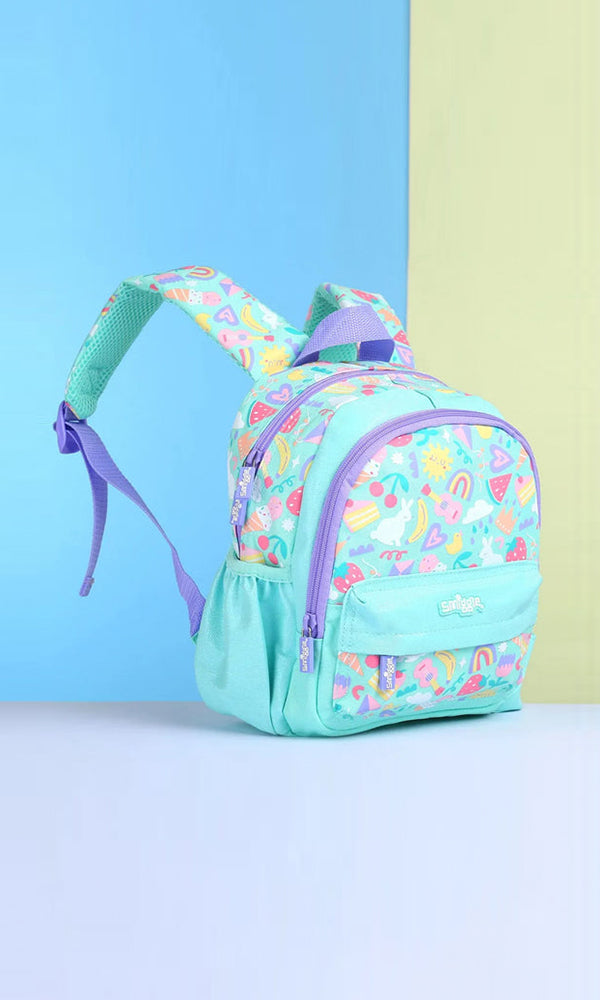 Sweeten up every adventure with the Smiggle Fruity Fun Junior Backpack! Designed for little ones aged 1–4, this cheerful backpack features a refreshing sea green color with a playful fruit-themed print full of strawberries, pineapples, watermelons, and more!