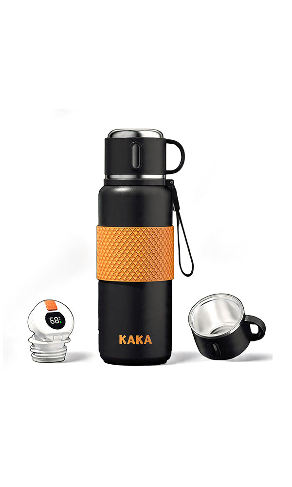Stay hydrated in style and convenience with the KAKA Smart Thermal Bottle. Designed for modern lifestyles, this sleek black bottle with a textured orange grip combines durability with innovation. The standout feature is the digital temperature display integrated into the lid, allowing you to instantly check the temperature of your drink with a simple touch—no more guessing!