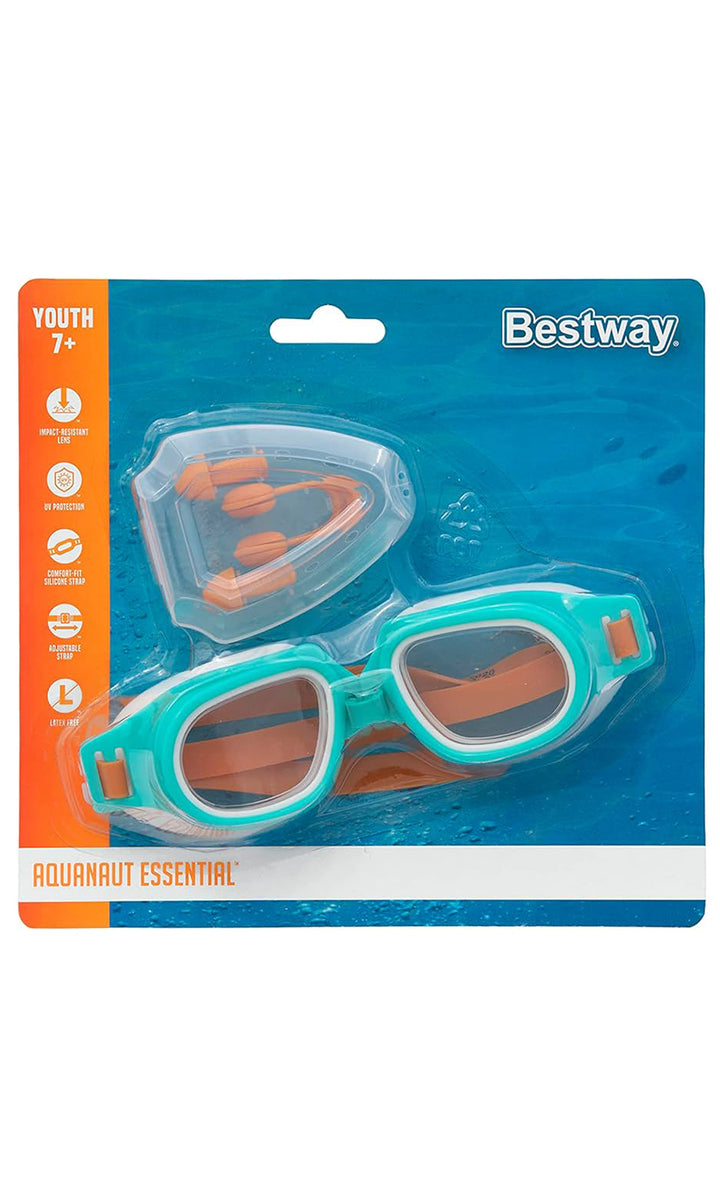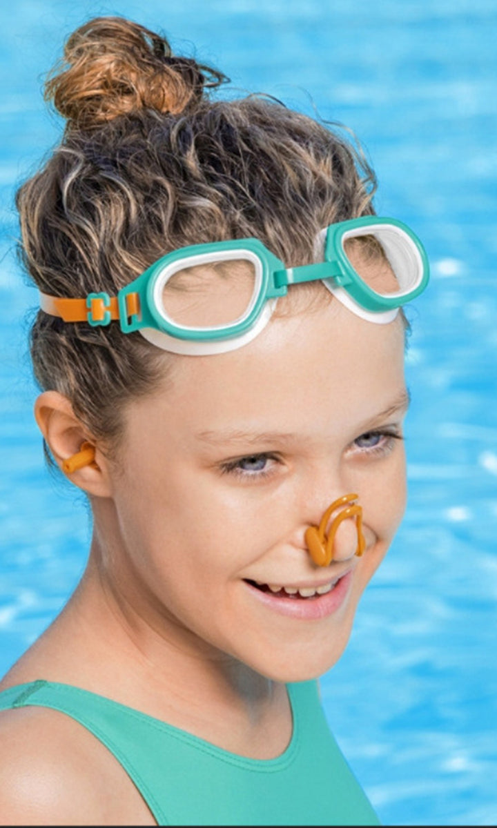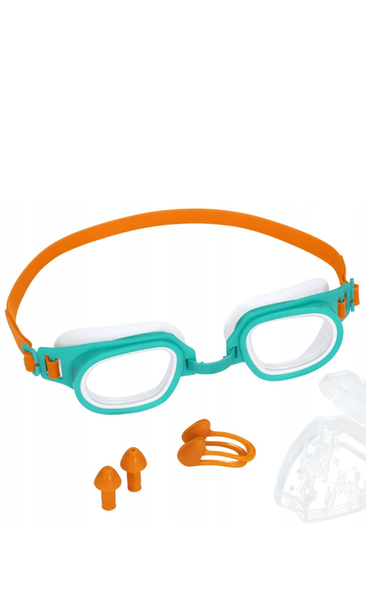 The BESTWAY Transparent & Protective Blue Swimming Kit for Kids is designed to provide safety and protection for children during swimming activities. It typically includes swim goggles, nose and ear plugs. It's important to choose a kit that suits the child's age, swimming abilities, and preferences. Always supervise children while swimming, regardless of the swimming kit used.